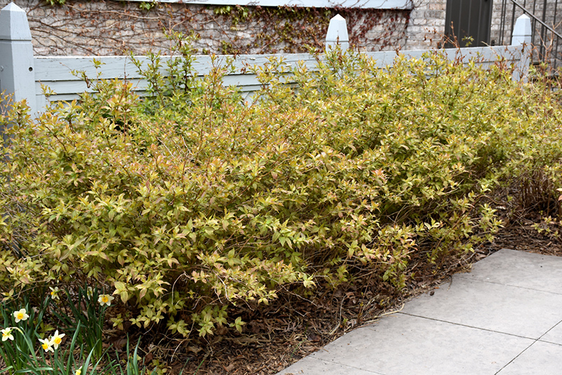 A durable utility shrub with bronze tinged foliage that emerges orange in spring and small yellow flowers; no particularly overwhelming ornamental features, but overall trouble-free, tolerant of adverse conditions; good in massing