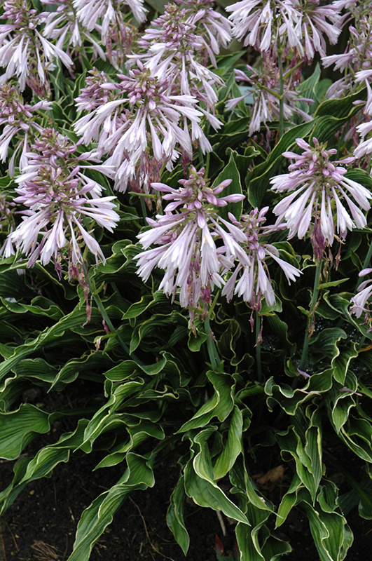 Praying Hands Hosta features dainty spikes of lavender tubular flowers rising above the foliage in late summer. Its attractive recurved narrow leaves remain dark green in color with distinctive gold edges throughout the season.