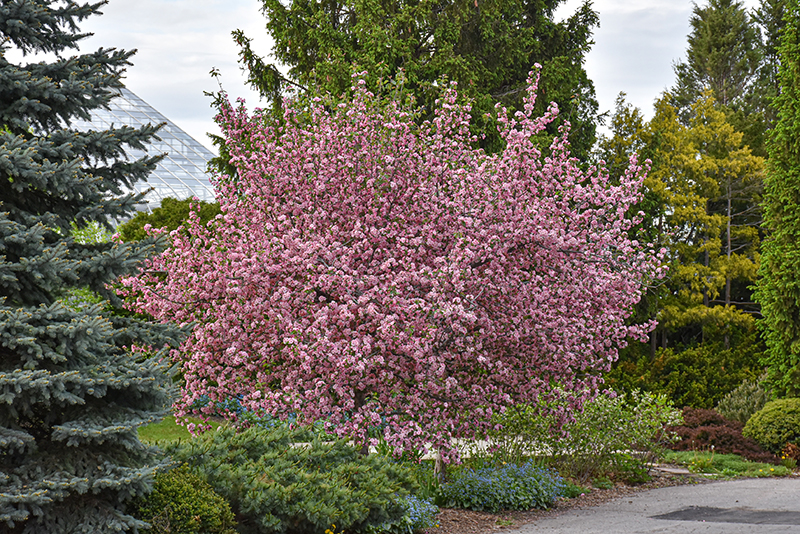 Brandywine Flowering Crab is a deciduous tree with an upright spreading habit of growth. Its average texture blends into the landscape, but can be balanced by one or two finer or coarser trees or shrubs for an effective composition.
